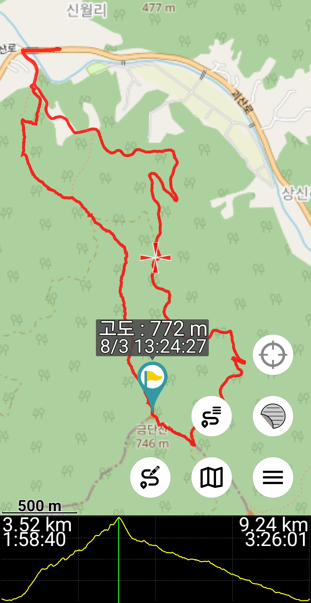 괴산군 청천면 신월리 신월교(10:10) 금단산 ㅡ 상신임도 ㅡ신월교(14:50)